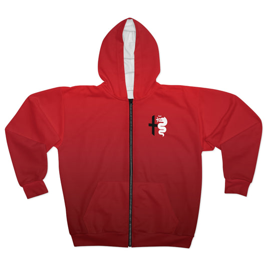 Alfa Romeo Rosso Etna Red Zip Hoodie - Biscione Snake & Cross Boldness - Made in the USA