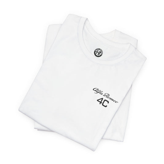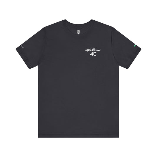 Alfa Romeo 4C T-Shirt - White Chest Design & Italian Flag Accents - Premium Cotton