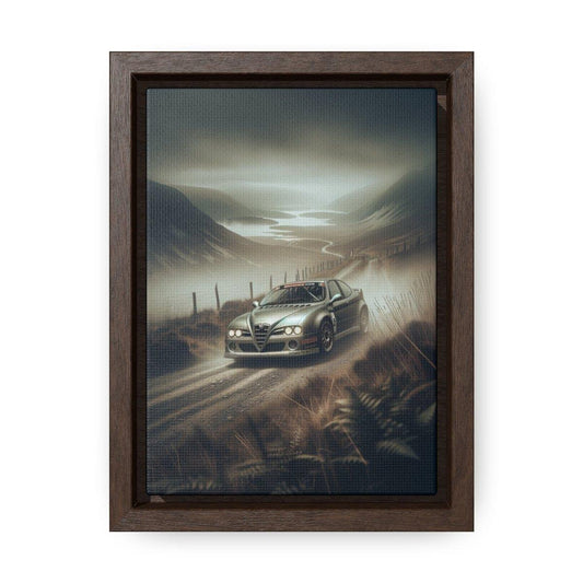 Highland Pursuit: Foggy Rising - Alfa Romeo 156 Metallic Contender - Vertical Canvas Print - Custom, Personalized