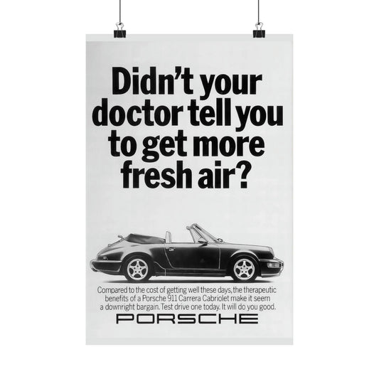 Vintage 911 Cabriolet Ad Poster - Get More Air - Museum-Grade Matte Print - Car, Art and Ad Enthusiast - AI Enhanced from Original