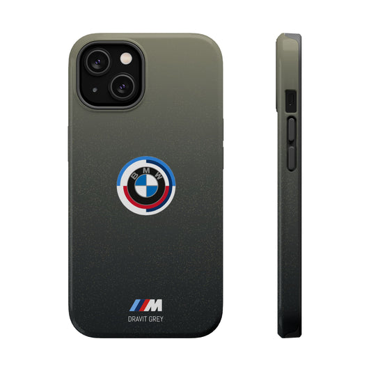 BMW G8X Dravit Grey With Gold Flecks iPhone MagSafe Tough Case - 50 Jahre Logo and M Piping